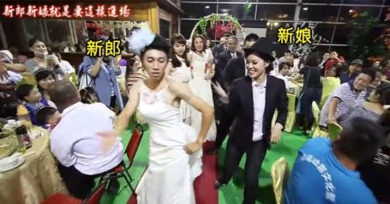 「新郎」、「新娘」一進場賓客全部瞬間傻眼,但音樂一下大家就嗨到停不下來了!
