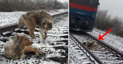 狗狗為了「保護受傷同伴」死守鐵軌,眼看「火車就要撞上來」也不肯離開!(影片)