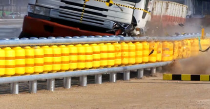 乍看不起眼的「黃色『罐罐』道路護欄」,大卡車一撞上彈回後你就會跪求「快引進台灣」!(影片)