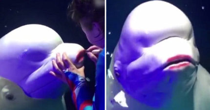 影/女馴養師直播抓小白鯨塗口紅 笑「美到骨子裡」白鯨傻愣住…