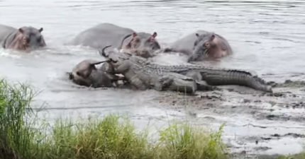 牛羚遭鱷魚埋伏快被吃掉 一旁河馬看不下去「霸氣出手」!(影片)