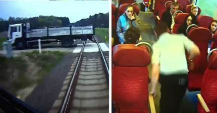高速火車煞不住即將撞上大卡車,他一個動作救了全車乘客的性命!