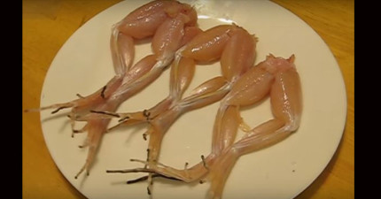 這名男子把青蛙去頭去皮、準備做料理,沒想到抹完鹽下一秒發生的事,讓我以後有點害怕吃三杯雞了!