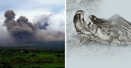 遊客欣賞活火山意外拍到「神秘男女相擁雲層照」,當地人揭開背後淒美愛情故事!