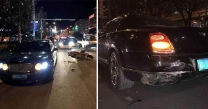 酒駕男騎電動車追撞1800萬賓利「撞出一凹洞」,瞎霸氣掏出4000塊:撞壞多少我賠!