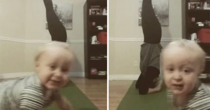 媽媽在鏡頭前倒立做瑜珈…回頭檢查影片「全被兒子搶走風采」!(影片)