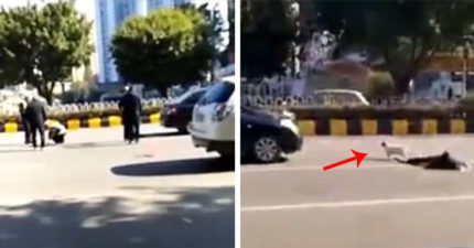 老翁街頭被車撞當場慘死,狗狗死都不肯離開擋住來車「想等主人起來」…(影片)