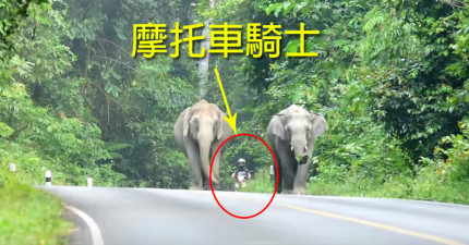 這些大象已經受夠了機車騎士一直騎車超大聲打擾他們,接著騎士就跪下求饒…