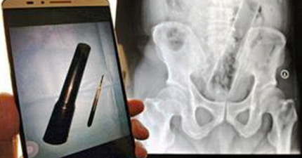 這名男子唱卡拉OK唱到麥克風跑到體內了…