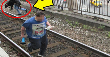 眼看火車就要將一隻狗狗和他的主人輾斃,一名愛狗人忽然衝向前…