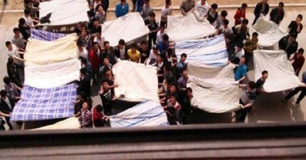 「我們會接住妳的!沒男朋友沒關係,我們來當就好」失戀想跳樓女生被一群男生和床單拯救。