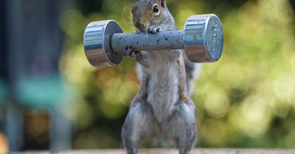 這個天才攝影師在後院設計了小圈套,沒想到竟讓他拍下這些驚奇的松鼠舉2KG啞鈴的照片!