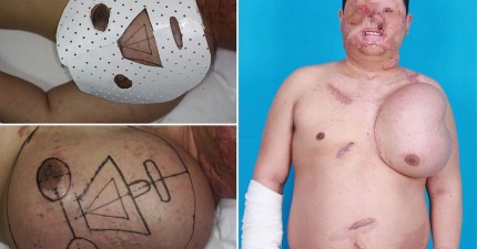這名男子因為意外而毀容,醫生決定在他胸部上「種出」一張新的臉。