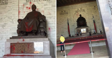 影/中正紀念堂蔣公銅像被潑「2大桶紅漆」 大廳直接關閉觀光客傻眼!