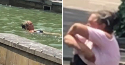 整個城市都是我的浴室!大媽嫌熱「脫衣游噴水池」:順便洗個褲褲好了~