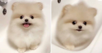小博美把洗手臺當跑步機 跌倒後「歪頭傻傻萌笑」好想抱緊處理❤