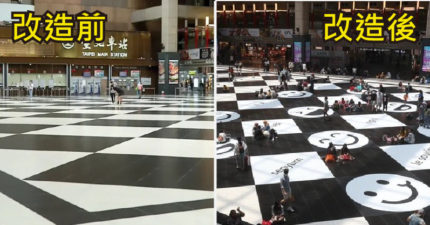 台北車站黑白棋盤大廳變「友善笑臉」台鐵:歡迎來坐!