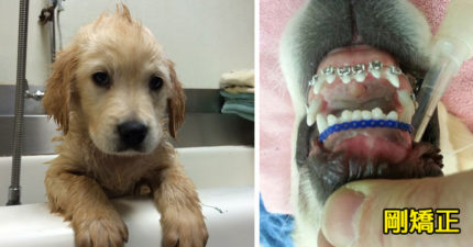 黃金獵犬寶寶「牙齒長歪」只好戴牙套 矯正後「張嘴笑呆」萌翻