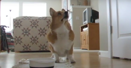 主人每天都超期待把狗食灑到地上,因為當食物一落地,小柯基失控的行為會讓你笑到沒聲音!