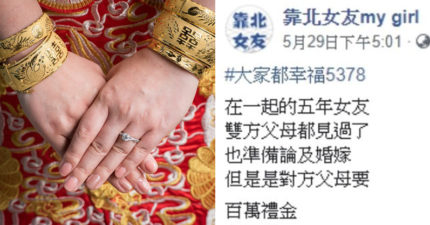 提親被要求「百萬聘金+32兩黃金」 網勸:換你嫁過去!