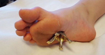 他光腳踩「鐵塔模型」插入腳掌 網看X光照傻眼:已經到巴黎