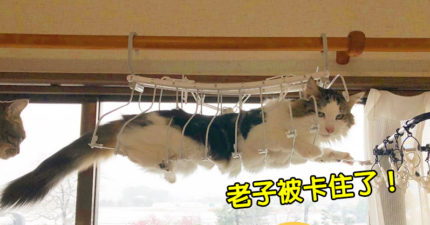 貓奴分享「主子被卡在半空」出糗照 喵星人的「啤酒肚」意外現身!