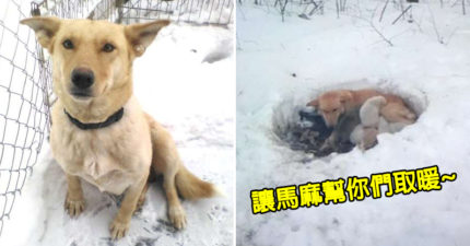 狗媽「在雪地挖洞穴」當庇護所 用肉身「幫寶寶取暖」畫面超感人!