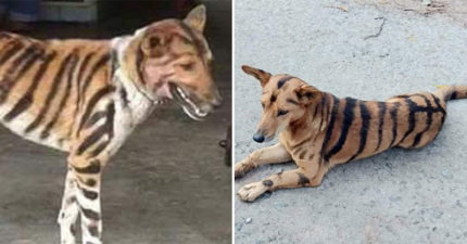 農夫為了「趕走猴子」使出絕招!把愛犬「畫上老虎條紋」超威效果曝光:嚇到了