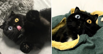 摺耳貓「天生全黑+異色瞳孔」網路爆紅 牠的「天然小圍巾」超Q❤