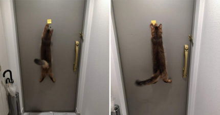 他分享「貓咪VS便利貼大戰」爆笑畫面 揭喵星人「超崩潰下場」網友:太賣力了!