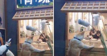 影/貪吃毛孩「緊盯客人吃拉麵」引3萬人爆笑 牠轉頭「超呆萌真相」網震驚:不是貓!