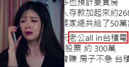 老公300萬買房金「All in台積電」 人妻看「存款」崩潰:如何交代?