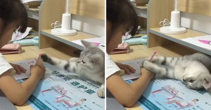 陪我玩!霸道貓出絕招「阻止主人寫功課」 最後靠「嘴巴」完勝