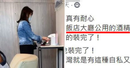 大媽把「公用酒精」裝好裝滿 網傻眼:有錢住飯店沒錢買酒精
