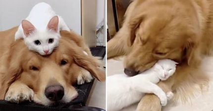 永遠的麻吉!阿金跟白貓「超黏日常」爆紅 當成公仔來舔太有愛♥