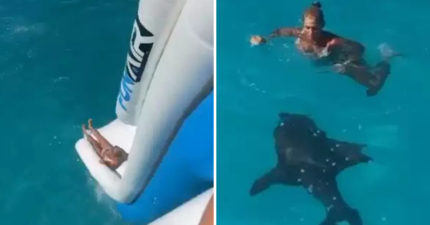 辣媽溜滑梯下海「巧遇鯊魚」 跟死神「擦肩過程」嚇壞所有人