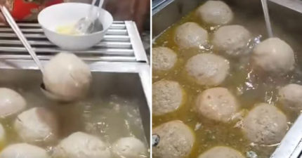 網瘋傳「吃一顆就飽」的巨無霸貢丸 放到碗裡完全看不到麵…