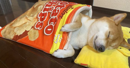 萌柴最愛睡「餅乾袋」 爽躺泡麵碗一掀開:你的柴味豆皮好囉~