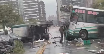 淡水驚見「公車攔腰折斷」!路過民眾PO網嚇壞:災難片