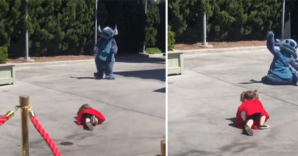 小女孩看到偶像太興奮跌倒 史迪奇「迪士尼特有神反應」讓她不再尷尬:謝謝你❤