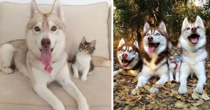 小貓從小被哈士奇養大 結果靈魂「直接掰成狗狗」變哈士貓啦♥
