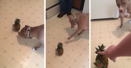 第一次看到鳳梨!比特犬嚇到「形象全毀」原地彈飛:這…這怪物好多角QQ