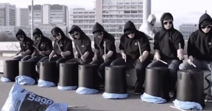 8個黑衣人帶著水桶到街上 棍子一揮…動作一致到就像影分身!