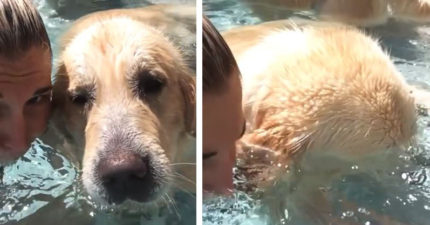 主人在旁邊「水底吹泡泡」 狗狗一看:我也會!
