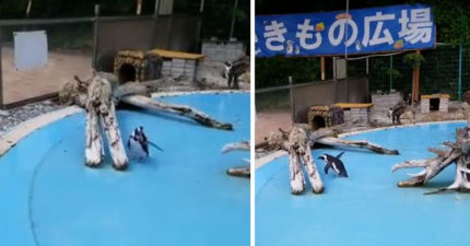 小企鵝第一次看到蝴蝶 興奮狂追「差點滑倒」樣子太傻萌!