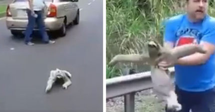 樹懶哥過馬路意外造成「超級大塞車」 好心人幫忙抱起…牠下秒卻做出「超奇葩動作」笑翻全網!