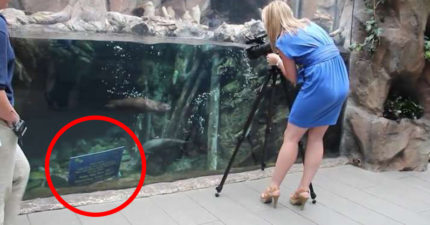 正妹記者拍海獺看到「水中告示牌」轉頭被下跪突擊!
