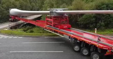 50公尺風力發電葉扇貨車「高難度神轉彎」讓人汗直流