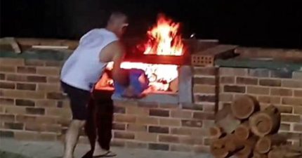 男子把一大盤「火種」倒進火堆中,接下來的畫面恐怖到你不會想看…(影片慎入)