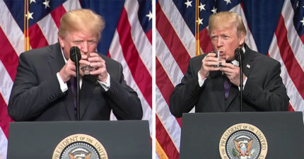 川普演講時像小baby一樣雙手握著杯杯喝水水,專家:已具有所有症狀 (影片)